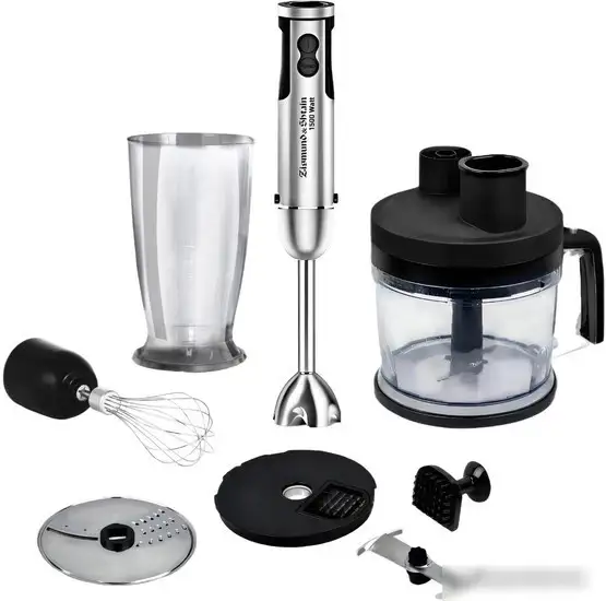 Погружной блендер Zigmund & Shtain BH-347 M — это мощный прибор с 1500 Вт, который легко справится с разными задачами на кухне. Он работает от сети и имеет 12 скоростей, что позволяет точно настроить работу под нужды. Блендер оснащён длинной металлической ножкой и пластиковым стаканом для удобства использования. В комплект входит венчик для взбивания, насадка для замешивания теста, а также насадка для нарезки кубиками и шинковка, что расширяет возможности устройства. Многоступенчатая регулировка скорости и режим «Турбо» помогают добиться нужной густоты и текстуры. Устройство отлично подходит для взбивания, нарезки и смешивания продуктов. Благодаря прочной конструкции и множеству функций он станет полезным помощником на любой кухне.