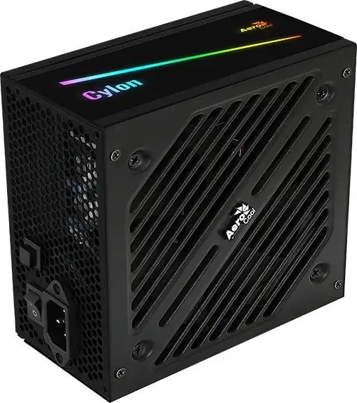 Блок питания AeroCool Cylon мощностью 600 Вт пригоден для сборки стандартных ПК. Он соответствует ATX форм-фактору и поддерживает современный стандарт ATX12V 2.4. Благодаря активной коррекции фактора мощности (PFC) он эффективно использует энергию и обеспечивает стабильную работу компонентов. Блок снабжен одним вентилятором размером 120 мм, который помогает охладить устройство без лишнего шума и подсветки вентилятора. Он имеет одну отдельную линию +12V с током до 45 А, что обеспечивает достаточную мощность для большинства систем. Размер кабеля питания составляет 0.5 м, а подключение кабелей — классическое, без модульной системы. Он оснащён разнообразными разъёмами: 20+4 pin для материнской платы, 4+4 pin CPU, SATA, PCIe 6 и 6+2 pin, а также 8-pin CPU-интерфейс. Его КПД достигает 85%, что помогает снизить потери энергии. Блок питания имеет адресную многоцветную подсветку корпуса, придающую системе стильный вид.