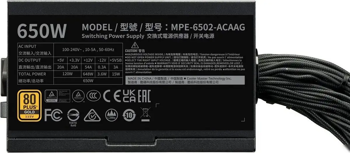 Блок питания Cooler Master MWE Gold 650 V3 ATX 3.1 Non-Modular MPE-6502-ACAAG-3BEU