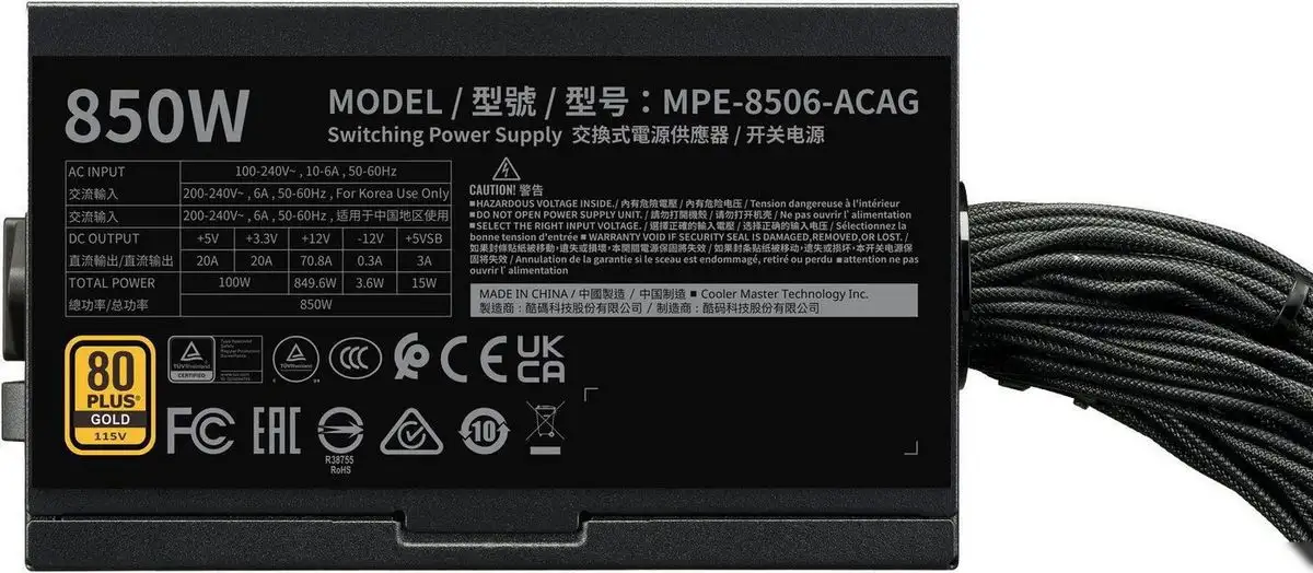 Блок питания Cooler Master MWE Gold 850 V3 ATX 3.1 Non-Modular MPE-8506-ACAG-BEU