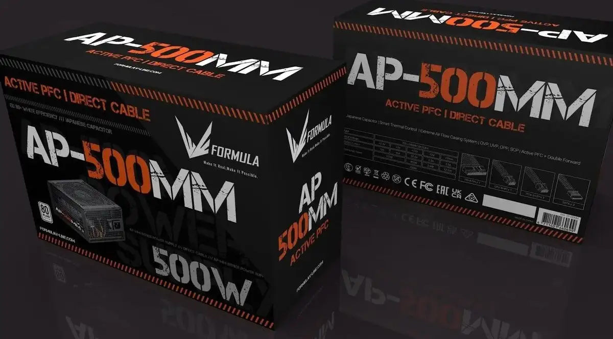 Блок питания Formula AP-500MM предназначен для геймерских компьютеров и имеет мощность 500 Вт. Он соответствует стандарту ATX и работает в диапазоне входного напряжения от 200 до 240 В. Благодаря активной коррекции фактора мощности (PFC) и сертификату 80 PLUS, он обеспечивает высокий КПД — до 80%, что помогает экономить электроэнергию. В блоке есть один вентилятор 120 мм для охлаждения, он работает тихо и эффективно. Кабели поставляются плоскими, что облегчает их укладку внутри корпуса, а размеры позволяют удобно установить его в любой корпус. Он имеет необходимое количество разъемов для подключения материнской платы, видеокарт, накопителей и других устройств. Этот блок питания подходит для сборок с умеренной мощностью и надежной работой.