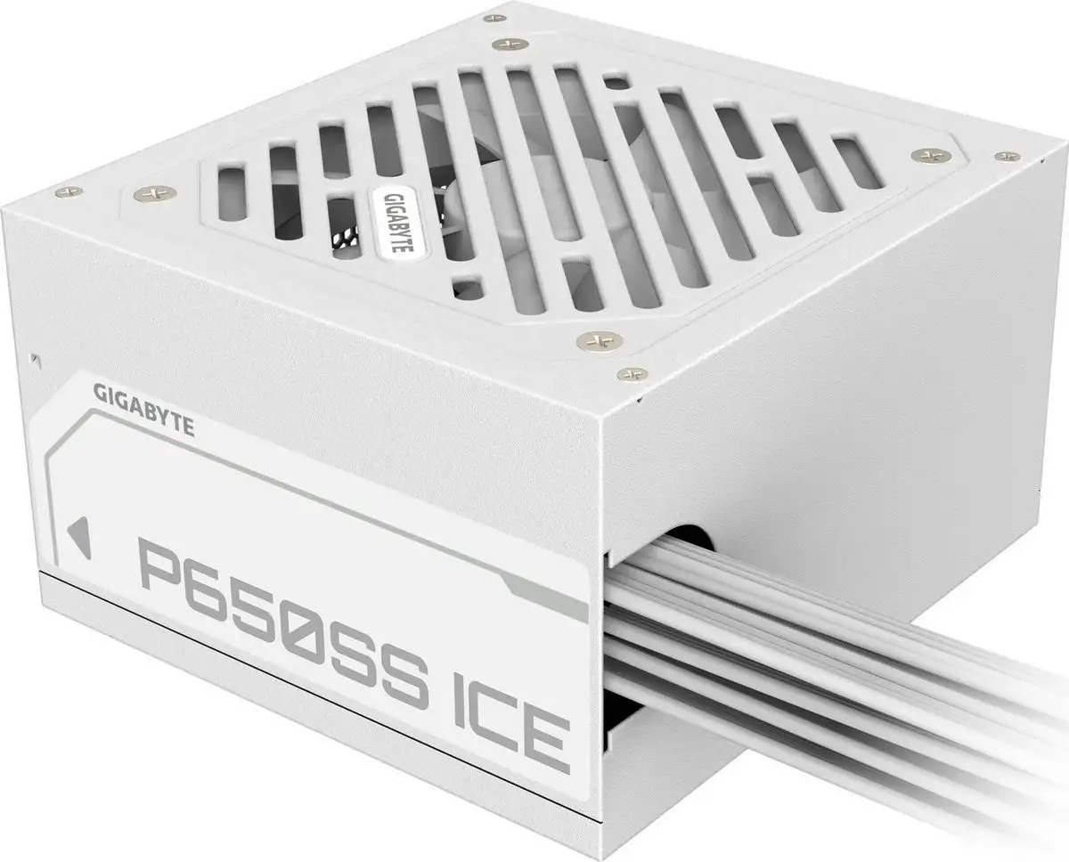 Блок питания Gigabyte P650SS Ice обеспечивает стабильную работу системы благодаря мощности в 650 Вт и высокому КПД до 90%. Он соответствует стандарту ATX12V 3.0 и имеет активную коррекцию мощности (PFC), что улучшает энергоэффективность. Модель оснащена одним 120-мм гидродинамическим вентилятором для тихой работы и защиты от перегрева. В комплекте есть плоские кабели без модульного подключения, что облегчает монтаж. Он поддерживает подключение к материнской плате через 20+4 pin и CPU через 4+4 pin, а также имеет разъемы SATA и PCIe для видеокарт и накопителей. Входное напряжение варьируется от 155 до 240 В, что позволяет использовать устройство в различных странах. Размеры блока компактны: 86 мм по высоте, 150 мм по ширине и 140 мм по длине. Корпус выполнен в белом цвете, что подходит для тех, кто ценит стильный дизайн.