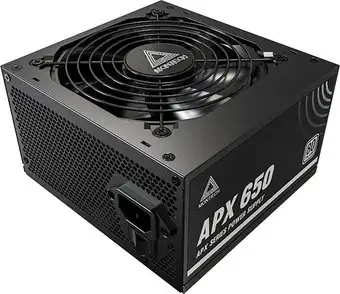 Блок питания Montech APX 650W обеспечивает стабильное питание компьютера благодаря мощности 650 Вт и высокой эффективности с сертификатом 80 PLUS. Он подходит для пользователей, которым нужен надежный источник энергии и один мощный канал +12V с током 54.1 А. Встроенный вентилятор размером 120 мм с гидродинамическим подшипником обеспечивает тихую работу и хорошее охлаждение. Размеры блока — 86 мм в высоту, 140 мм в ширину и 150 мм в глубину, он легко поместится внутри корпуса. Этот блок питания имеет базовые кабели и разъемы для разных устройств, включая SATA, PCIe, CPU и другие. Он не модульный, так что кабели подключаются напрямую.