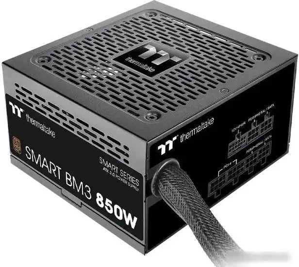 Блок питания Thermaltake Smart BM3 Bronze 850W предназначен для геймеров и подходит для мощных компьютеров. Он имеет мощность 850 Вт и работает с стандартом ATX12V 3.0. Блок оснащён одним вентилятором диаметром 120 мм, который обеспечивает тихую работу и хорошее охлаждение. Он обладает активной коррекцией факторa мощности и высокой эффективностью до 85%, что помогает снизить энергопотери. Корпус устройства чёрный и компактный, его размеры — 86x150x140 мм, вес — 2.3 кг. Модульное подключение кабелей облегчает сборку компьютера и порядок внутри корпуса.