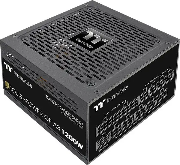 Блок питания Thermaltake Toughpower GF A3 Gold 1200W предназначен для геймеров и высокоэффективных систем. Он обеспечивает мощность 1200 Вт и использует стандарт ATX12V 3.0, что делает его совместимым с большинством современных комплектующих. Активная коррекция фактора мощности и сертификат 80 PLUS Gold гарантируют высокую энергоэффективность и экономию энергии. Он имеет полностью модульное подключение кабелей, что облегчает сборку и управление кабелями внутри корпуса. В блоке есть один гидродинамический вентилятор 120 мм, который быстро охлаждает устройство без шума. Управление вентилятором автоматическое, он работает только при необходимости, уменьшая уровень шума. Блок оснащён большим количеством разъёмов, включая PCIe Gen5 для современных видеокарт. Надёжность обеспечивают качество компонентов и встроенные защиты от перегрузки и короткого замыкания. Такой блок питания подходит для современных игр и профессиональных задач, обеспечивая стабильную работу системы. В комплект входит кабель питания длиной 0.6 м, а размеры составляют 86x150x140 мм.