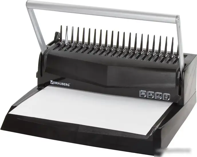 Брошюровщик BRAUBERG B12 — это надежное устройство для переплета документов формата A4. Он использует пружинный механиз�ый тип с пластиковой пружиной, который легко перфорирует до 12 листов за раз. Благодаря прямоугольным отверстиям и шагу перфорации 9:16 он обеспечивает аккуратное и ровное соединение. Устройство позволяет регулировать глубину перфорации от 2 до 5 мм, что удобно при работе с разной толщиной документов. Максимальный диаметр пружины составляет 51 мм, а толщина переплета — до 450 листов. У брошюровщика есть функция регулировки формата и глубины перфорации для удобства работы. Он оснащен контейнером для отходов и не имеет контейнера для пружин или селектора пружин. Размеры устройства — 350x275x150 мм, а вес — 3,5 кг, что позволяет легко переносить его в офисе или учебном заведении.