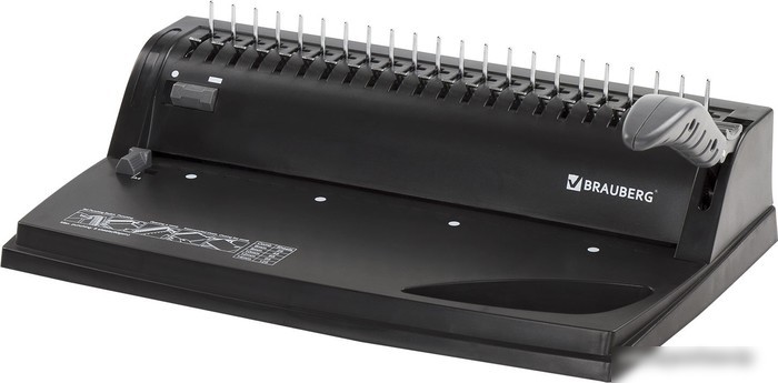Брошюровщик BRAUBERG B8 предназначен для переплёта документов формата A4. Он использует пружинный механизм с пластиковыми пружинами, который легко фиксирует до 8 листов бумаги толщиной до 125 листов. Устройство позволяет регулировать формат страниц, обеспечивая удобство при работе с разными документами. Встроенный контейнер для отходов помогает поддерживать чистоту во время работы. Брошюровщик оснащён прямоугольными отверстиями для перфорации с шагом 9:16, что обеспечивает одинаковое расположение отверстий. Возможность выбора диаметра пружин до 14 мм дает возможность использовать разные по размеру пружины для надежной фиксации. Устройство не имеет функции регулировки глубины перфорации и селектора пружины, что упрощает его использование. Компактные размеры и вес 2.6 кг делают его удобным для перемещения и хранения. В целом, BRAUBERG B8 — надежный инструмент для плотной переплётки документов и быстрое оформление папок.