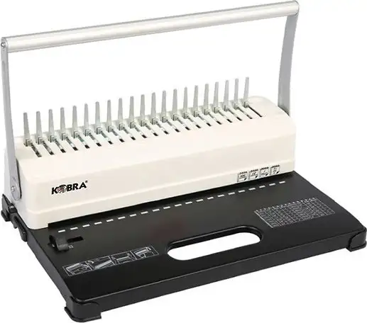 Брошюровщик Kobra Queenbind H500 предназначен для переплёта документов формата A4. Он использует пружинный механизм с пластиковыми пружинами и способен переплести до 14 страниц толщиной до 5 см. Устройство позволяет регулировать глубину перфорации от 2 до 5 мм, что обеспечивает точное и аккуратное соединение. Перфорационные отверстия имеют прямоугольную форму и шаг 9:16, а диаметр пружины варьируется от 6 до 51 мм. Благодаря простому управлению, вы легко выбираете необходимый формат и настройку перфорации. Брошюровщик оборудован контейнером для отходов, что облегчает чистоту и порядок при работе. Компактные размеры позволяют удобно разместить его на столе — всего 140 мм в высоту и 350 мм в ширину. Вес устройства составляет 3,2 кг, что делает его достаточно мобильным для использования в офисе.