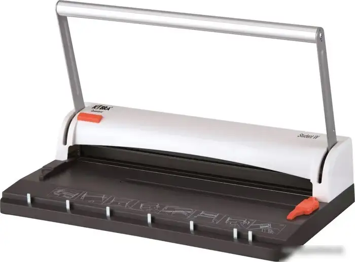 Брошюровщик Kobra Queenbind Student W предназначен для быстрого и удобного соединения листов формата A4 с помощью металлических пружин. Он спокойно перфорирует до 7 листов одновременно с прядью толщиной до 70 листов, что позволяет обработать большие объемы документов за короткое время. Устройство обеспечивает точную перфорацию с шагом 3:1 и прямоугольными отверстиями, что гарантирует плотное закрепление страниц. Оно не имеет регулировки глубины перфорации, но умеет выполнять вертикальную обработку для ровных краёв. Брошюровщик легкий — всего 1.5 кг, компактный по размерам (высота 110 мм, ширина 350 мм, глубина 190 мм) и легко помещается в офисном пространстве. Он доступен в белом и черном цветах, что позволяет выбрать подходящий дизайн для любого офиса. Отсутствие встроенного контейнера или селектора пружин делает его простым в использовании. Это устройство подходит для школьных, офисных и домашних задач по переплёту документов.