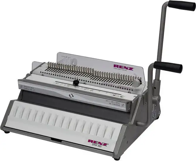 Брошюровщик RENZ SRW 360 предназначен для механической переплётки документов формата A3. Он способен перфорировать до 25 листов одновременно, создавая уникальные отверстия в виде квадратиков с шагом 3:1. Эта модель позволяет регулировать глубину перфорации до 2.2 мм и отступ от края, что обеспечивает точность и удобство работы. Вы можете сменить пружину диаметром от 5.5 до 16 мм, чтобы выбрать оптимальный размер для вашего проекта. Благодаря вертикальной обработке и функции отключения ножей, брошюровщик обеспечивает безопасную работу и чистоту. Регулировка формата и отступа помогает адаптировать устройство под разные задачи. Металлический корпус повышает надежность и долговечность прибора. Устройство имеет селектор пружины, что облегчает настройку и ускоряет процессы. Высота 180 мм, ширина 560 мм и вес 13 кг делают его достаточно компактным для офисных условий.