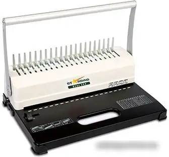 Брошюровщик Starbind Star 250 использует пружинный механизм с пластиковой пружиной, которая обеспечивает надежную переплету документов формата A4. Он способен перфорировать до 12 листов за раз с шагом 9:16 мм и толщиной переплета до 450 листов, что делает его удобным для больших объемов работы. Устройство легко регулирует глубину перфорации от 2 до 5 мм, что помогает выбрать оптимальный результат. Перфорация осуществляется через прямоугольные отверстия, обеспечивающие надежное закрепление страниц. Его корпус изготовлен из пластика и весит всего 3.5 кг, что облегчает перенос и использование. Брошюровщик не имеет функции вертикальной обработки, отключения ножей или автоматического регулировки формата. Он подходит для быстрого и удобного переплета документов без лишних настроек. Благодаря качественной конструкции, он долговечен и служит долго при регулярном использовании.