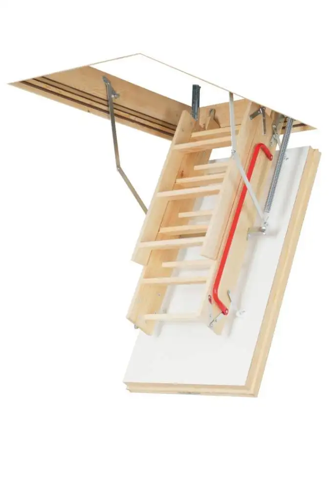 Лестница чердачная FAKRO суперэнергосберегающая LWT-305 отлично подходит для домов и дач с мансардами, используемыми как кладовые. Она надежная и прочная, обеспечивает безопасный доступ благодаря противоскользящим ступеням и поручню. Лестница складывается и убирается в потолок, что помогает экономить место в доме. Утепленная крышка люка предотвращает проникновение холодного воздуха, что важно в холодных условиях. Монтаж и регулировка по высоте просты и не требуют специальных навыков. Металлическая конструкция выдерживает тяжелые предметы и служит долго.