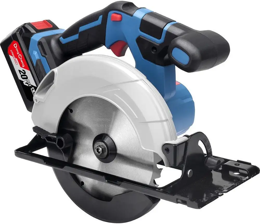 Циркулярная пила DongCheng DCMY165S Type BM оснащена мощным бесщеточным двигателем, который обеспечивает высокую скорость вращения — 5600 об/мин. Она работает на аккумуляторах Li-ion с напряжением 20 В и емкостью 4 Ач, что позволяет работать долго без подзарядки. Пила подходит для резки деревянных материалов с глубиной пропила до 59 мм при угле 90° и может наклоняться до 50° для косых резов. Размер диска 165 мм обеспечивает широкие возможности для различных задач. Устройство легко управляется одним нажатием, так как не имеет регулировки скорости или лазерного маркера. В комплект входят два аккумулятора, зарядное устройство, диск и инструкция. Вес пилы составляет всего 3,2 кг, что делает её удобной для работы на высоте или в ограниченных пространствах. Благодаря компактным размерам и небольшому весу, она отлично подходит для домашнего и профессионального использования.