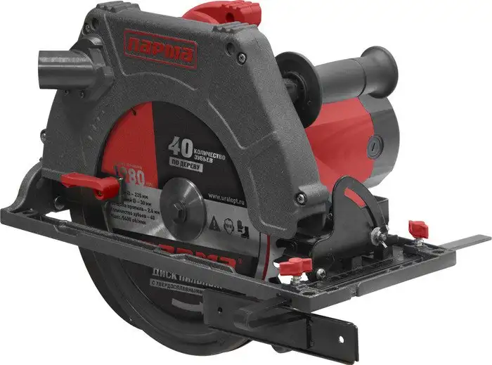Дисковая пила Парма 235Д оснащена мощным двигателем 2200 Вт, что позволяет легко резать различные материалы. Она имеет диск диаметром 235 мм и удобную регулировку угла наклона до 45°, чтобы делать точные косые резы. Пила подключается к пылесосу, что помогает поддерживать рабочее место чистым. Благодаря плавному пуску и одной скорости работы, она проста в использовании и обеспечивает стабильный рез. Глубина реза при 90° составляет 80 мм, а при 45° — 65 мм. В комплект входят диск, специальный ключ, линейка и струбцина для надежной фиксации деталей.