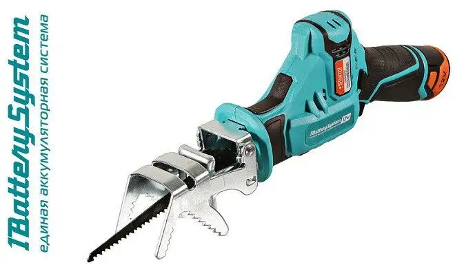 Сабельная пила Sturm CRS1201C работает на аккумуляторах и удобна в использовании благодаря легкому весу — всего 0,53 кг. Она оснащена регулируемой скоростью распила и хдителем полотна длиной 20 мм, что позволяет точно управлять процессом работы. Максимальная глубина пропила по дереву составляет 65 мм, а скорость вращения шпинделя — 2700 об/мин. В комплект входит один аккумулятор емкостью 2 Ач, зарядное устройство, пильное полотно по дереву и пластиковый кейс для хранения. Благодаря встроенной платформе, устройство совместимо с другими аккумуляторами этой серии. В пиле нет лазерного маркера, подсветки и пылесборника, что упрощает использование в хорошо освещенных помещениях. Она подойдет для небольших работ по дому и строительству, где важна легкость и портативность. Дополнительных аккумуляторов в комплекте не предусмотрено, устройство питается от двух аккумуляторов по очереди, что обеспечивает продолжительную работу.