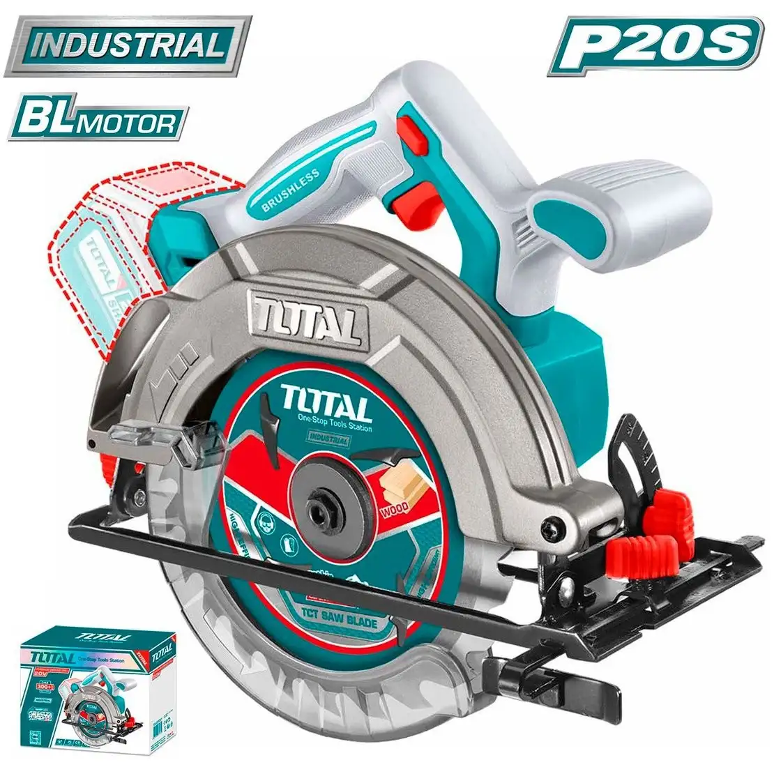 Дисковая пила Total TSLI1652 работает от аккумулятора, но он не входит в комплект. У неё есть бесщеточный двигатель, который обеспечивает более долгий срок службы и меньший износ. Диаметр режущего диска — 165 мм, что позволяет делать глубокий рез — до 55 мм при 90°, и до 42 мм при 45°. Скорость вращения шпинделя — 5200 об/мин, что помогает быстро и точно справляться с разными материалами. Вес пилы всего 3.3 кг, её удобно держать и управлять во время работы. В комплект входит пильный диск и инструкция, всё упаковано в прочную коробку.