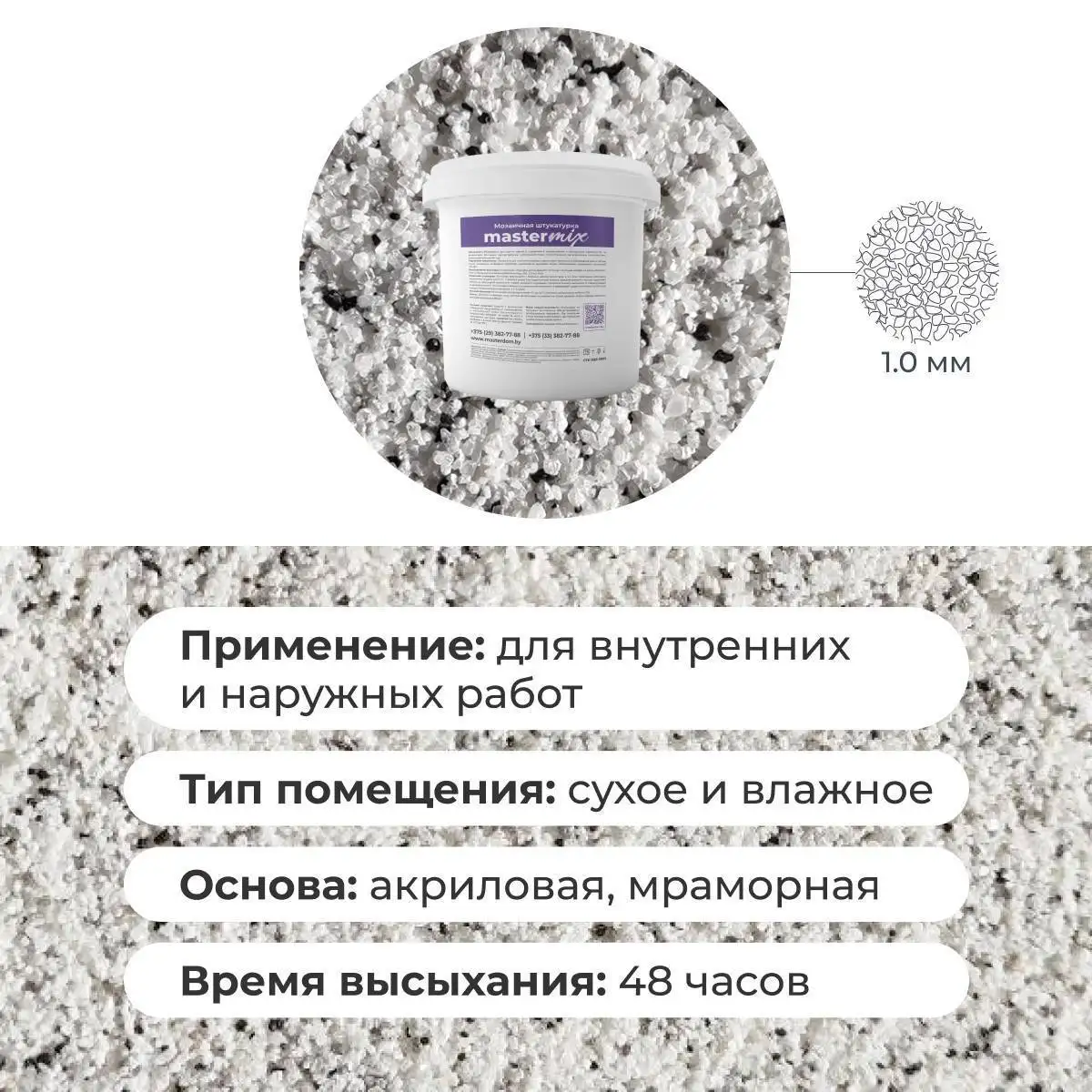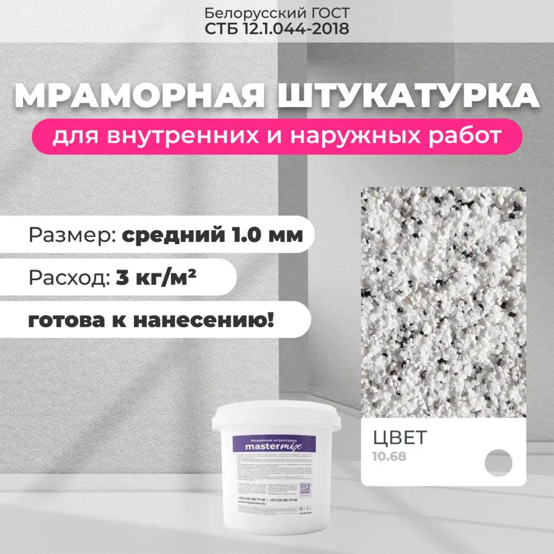 Мраморная штукатурка Байрамикс MIX, соответствует требованиям стандарта СТБ 1263-2001, имеет сертификацию для использования как внутри помещений, так и снаружи зданий. Возможна колеровка цвета по индивидуальному заказу.