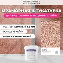 Мраморная штукатурка Байрамикс MIX, соответствует требованиям стандарта СТБ 1263-2001, имеет сертификацию для использования как внутри помещений, так и снаружи зданий. Возможна колеровка цвета по индивидуальному заказу.