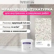 Мраморная штукатурка Байрамикс MIX, соответствует требованиям стандарта СТБ 1263-2001, имеет сертификацию для использования как внутри помещений, так и снаружи зданий. Возможна колеровка цвета по индивидуальному заказу.
