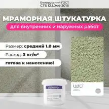 Мраморная штукатурка Байрамикс MIX, соответствует требованиям стандарта СТБ 1263-2001, имеет сертификацию для использования как внутри помещений, так и снаружи зданий. Возможна колеровка цвета по индивидуальному заказу.