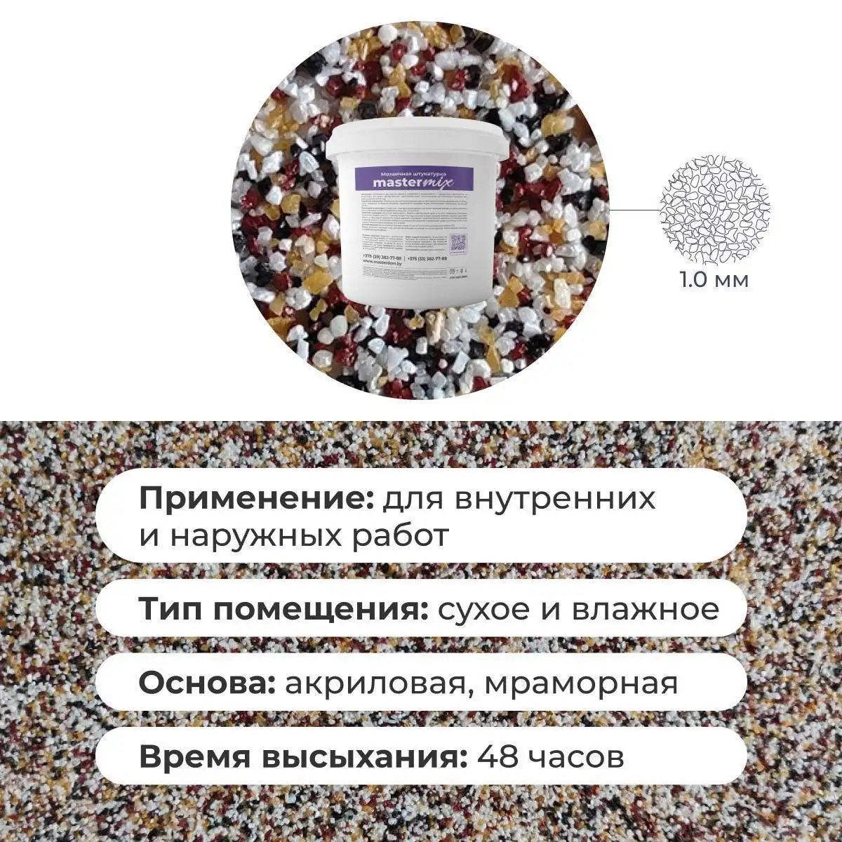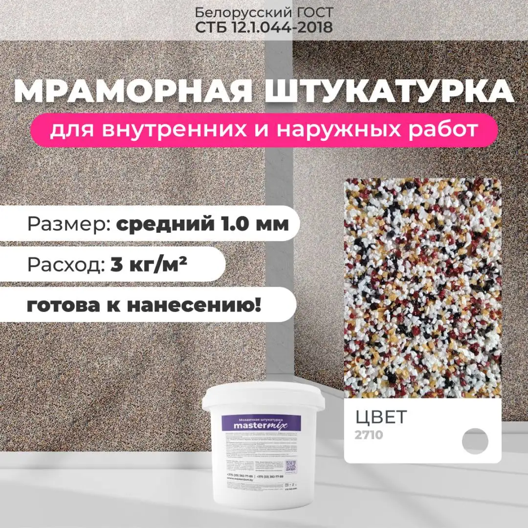 Мраморная штукатурка Байрамикс MIX, соответствует требованиям стандарта СТБ 1263-2001, имеет сертификацию для использования как внутри помещений, так и снаружи зданий. Возможна колеровка цвета по индивидуальному заказу.