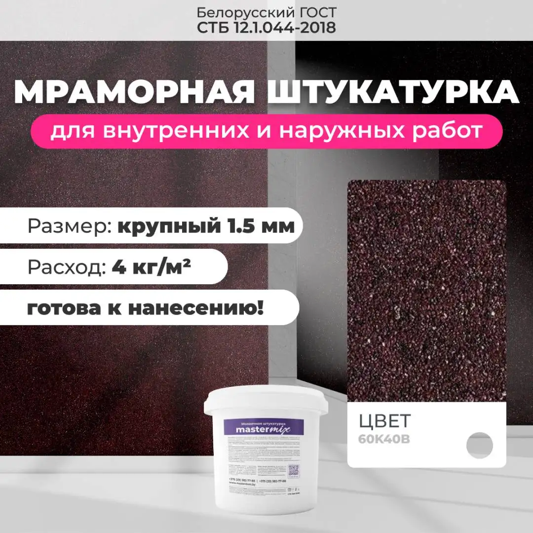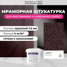 Мраморная штукатурка Байрамикс MIX, соответствует требованиям стандарта СТБ 1263-2001, имеет сертификацию для использования как внутри помещений, так и снаружи зданий. Возможна колеровка цвета по индивидуальному заказу.