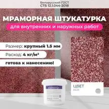 Мраморная штукатурка Байрамикс MIX, соответствует требованиям стандарта СТБ 1263-2001, имеет сертификацию для использования как внутри помещений, так и снаружи зданий. Возможна колеровка цвета по индивидуальному заказу.