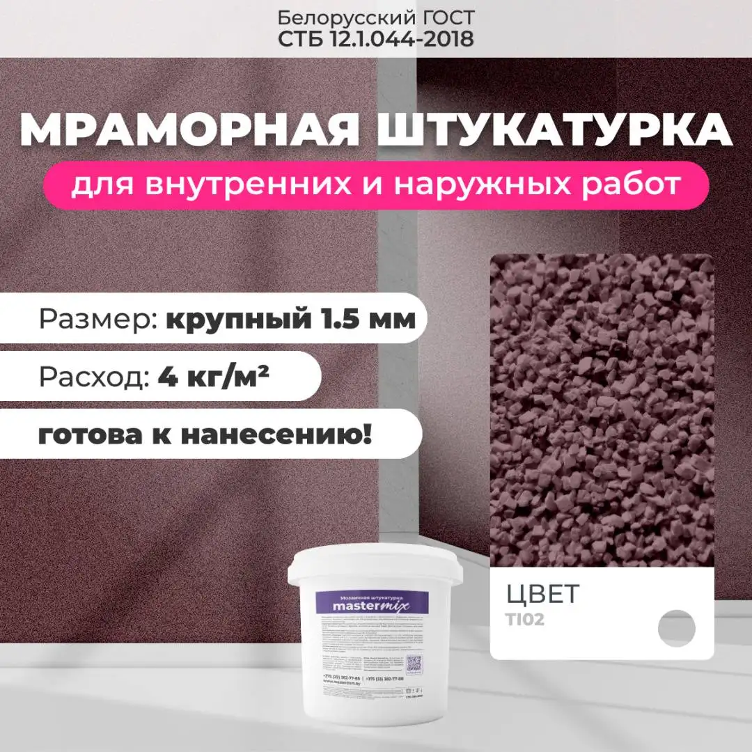 Мраморная штукатурка Байрамикс MIX, соответствует требованиям стандарта СТБ 1263-2001, имеет сертификацию для использования как внутри помещений, так и снаружи зданий. Возможна колеровка цвета по индивидуальному заказу.