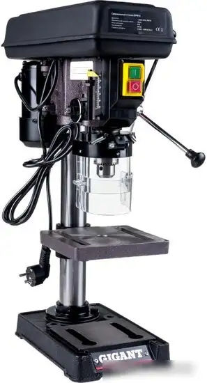 Станок Gigant DP813 — это надежное сверлильное оборудование для обработки металла и дерева. Он работает от электросети с мощностью 350 Вт и напряжением 220V, что обеспечивает стабильную работу. Устройство выполняет сверление, имеет ручное управление и регулируемый угол наклона стола для более точных операций. Максимальный диаметр сверла составляет 13 мм, а скорость вращения — до 2500 об/мин, выбрав одну из пяти настроек. Ход пиноли равен 50 мм, что позволяет делать глубокие отверстия. Максимальная высота заготовки для обработки — 220 мм. В комплект входит все необходимое, например, патрон, основание, рукоятка подачи и защитное ограждение. Благодаря компактным размерам, станок удобно разместить в мастерской, а его масса — 16 кг, что обеспечивает хорошую стабильность во время работы. Устройство не оснащено автоматической подачей, охлаждением или пылесборником, что делает его простым и функциональным для домашних и профессиональных задач.