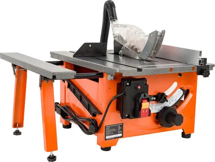 Станок Gigant TSJ-210-1200 предназначен для распиловки деревянных материалов. Он работает от электросети с мощностью 1200 Вт и напряжением 220 В. Устройство оснащено диском диаметром 210 мм, который обеспечивает чистое и точное пиление. Легко регулируется угол наклона рабочего узла для выполнения косого пиления. Максимальная глубина обработки составляет 47 мм, а при работе под углом 45° — 41 мм. Скорость вращения диска достигает 5000 об/мин, что помогает быстро и качественно выполнять задачи. Он не имеет автоматической подачи, охлаждения или пылесборника, но подключается к пылесосу для удаления стружки. Размеры рабочего стола — 520х400 мм, что дает простор для обработки больших материалов. Вес станка — 14 кг, он легко перемещается и удобно в использовании.