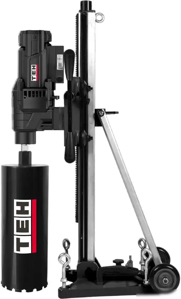 Сверлильный станок TEH TCD9240 предназначен для работы с бетоном и работает от сети с мощностью 3600 Вт при напряжении 220 В. Он позволяет просверливать отверстия диаметром до 240 мм и глубиной до 580 мм, что подходит для различных строительных задач. Устройство имеет одну скорость вращения — 700 об/мин, что обеспечивает стабильную работу. Охлаждение помогает предотвращать нагрев детали во время длительных работ. Вес станка — 34,6 кг, он устойчив и безопасен в использовании. В комплект входит установка алмазного сверления, набор ключей и дополнительные упоры, что облегчает монтаж и работу. В станке отсутствует система охлаждения и пылесборник, поэтому для чистоты можно использовать внешний пылесос. Простая конструкция позволяет быстро заменять сверла и менять настройки. Этот станок надежно выполняет сверление в бетоне и обладает высокой мощностью для профессиональных задач.