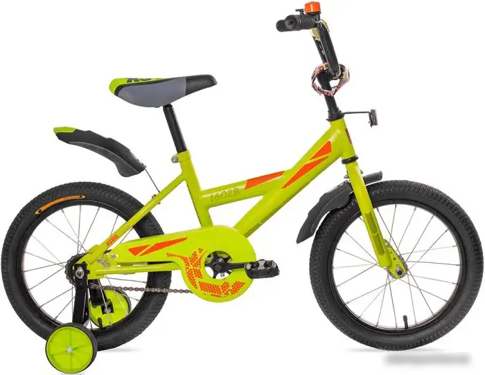 двухколесный велосипед с приставными колесами для мальчиков/для девочек, возраст: 4-6 лет, рост: 100-115 см, сиденье: обычное (седло), колеса 16'', рама: сталь Hi-ten, вилка жесткая