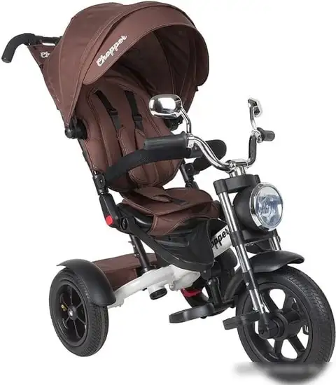 Детский велосипед Chopper CH1BR идеально подходит для мальчиков и девочек. Он оснащён поворотным сиденьем с регулируемой спинкой, что обеспечивает комфорт для ребёнка во время прогулок. Безопасность обеспечивают ремни, страховочный обод и ручка с управлением. Вилка с амортизацией смягчает удары, а тринадцативые надувные колёса диаметром 10 и 12 дюймов создают плавное движение. Задние колёса можно зафиксировать для устойчивости, а у велосипед есть передний и задний щитки. В комплекте есть зеркало заднего вида, корзина сзади и сумка на ручке для мелких вещей. Световые и звуковые эффекты фонаря делают поездки более яркими и безопасными. Велосипед раскладной рамы не имеет, он удобен для хранения и переноски. В целом, этот велосипед сочетает безопасность, комфорт и стиль в одном устройстве.