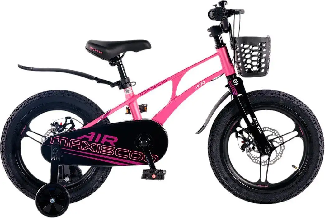 Детский велосипед Maxiscoo Air Pro 16 2025 предназначен для девочек с ростом 100-115 см и возрастом 4-6 лет. Он выполнен из магниевого сплава, что делает его лёгким — всего 9,4 кг, и удобным для ребёнка. Велосипед оборудован двумя надувными 16-дюймовыми колесами и приставными колёсами для дополнительной устойчивости. Он оснащён цепным приводом с одной передачей и дисковыми механическими тормозами спереди и сзади для безопасного торможения. В комплект входит передний и задний щитки, защита цепи и корзина спереди для перевозки небольших вещей. Управление осуществляется без ручки и дополнительных элементов, а устойчивость обеспечивает подножка. Влагозащита и защита цепи помогают сохранять велосипед в хорошем состоянии. В конструкции есть яркий розовый цвет рамки и козырёк для защиты ребёнка от солнца. Также есть звонок для оповещения окружающих.