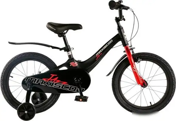 двухколесный велосипед с приставными колесами для мальчиков, возраст: 4-6 лет, рост: 100-115 см, сиденье: обычное (седло), колеса 16'', рама: магниевый сплав, вилка жесткая