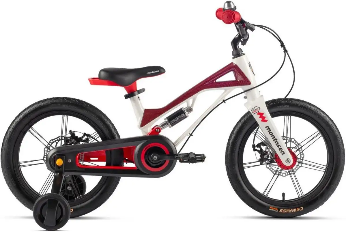 двухколесный велосипед с приставными колесами для мальчиков, возраст: 4-6 лет, рост: 100-115 см, сиденье: обычное (седло), колеса 16'', рама: магниевый сплав, вилка жесткая