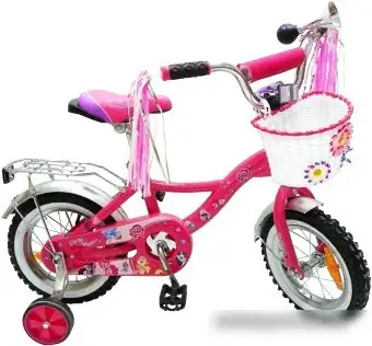 двухколесный велосипед с приставными колесами для девочек, сиденье: обычное (седло), колеса 12'', рама: сталь, вилка жесткая