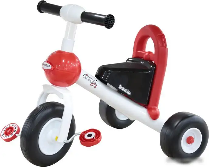 Детский велосипед Полесье Базик предназначен для малышей от 2 лет и подойдет как мальчикам, так и девочкам. Он выполнен из легкого пластика, что облегчает его управление и транспортировку. В велосипеде есть удобное сиденье и ручка, которая помогает взрослым управлять движением ребёнка. Три цельных колеса обеспечивают стабильность и безопасность при катании. Передний щиток защищает малыша от грязи и брызг во время прогулки. Сзади размещена корзина, куда можно положить небольшие вещи или игрушки. У велосипеда отсутствуют тормоза и сложные функции, он сделан для спокойных прогулок. Рама выполнена в белом и красном цветах, привлекательных для малышей. Есть также простая подножка для отдыха. Этот велосипед — легкий и безопасный способ познакомить ребенка с ездой на велосипеде.