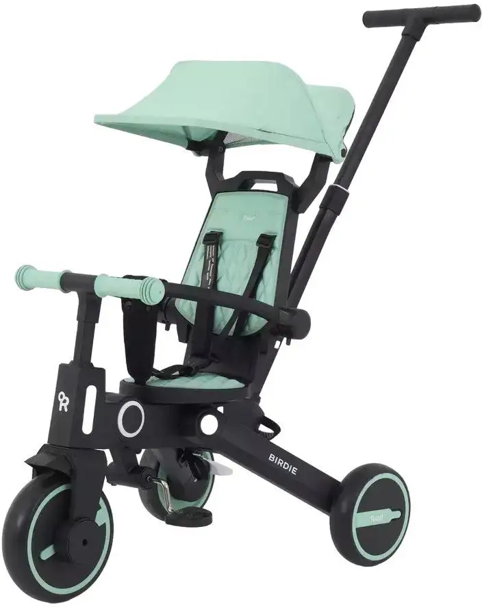 Детский велосипед Rant Birdie RB202 в мятном цвете подходит для малышей от 1 до 3 лет и роста 75-100 см. Он сочетает в себе функцию велосипеда и коляски, его легко складывать для удобного хранения и транспорта. В сиденьи есть 3-точечные ремни безопасности, которые удерживают ребенка в безопасности. Поворотное сиденье с фиксированной спинкой помогает малышу удобно сидеть и развивать баланс. Рама выполнена из лёгкого алюминия, что облегчает управление. Колеса диаметром 7 и 8 дюймов обеспечивают стабильность и мягкую езду. Передний тормоз отсутствует, но задние колёса имеют стопор для безопасной остановки. В комплект входит передний щиток и дождевик для защиты малыша от непогоды. Такой велосипед идеально подойдёт для активных малышей и поможет развивать первые навыки катания.