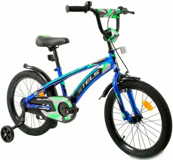 Детский велосипед Stels Shadow 18 предназначен для детей ростом 105-115 см и возрастом 5-7 лет. Он выполнен в синем цвете с прочной металлической рамой размером 10.5 дюймов. Велосипед оснащён одним скоростным приводом и жёсткой вилкой, что делает его лёгким и надёжным. В комплекте есть задний и передний щитки, защита цепи и ручка для переноски. Ободные колёса диаметром 18 дюймов и надувные шины обеспечивают комфорт и лучшее сцепление с дорогой. Важной функцией является крепкий звонок для оповещения окружающих. Перед использованием необходимо проверять давление в шинах, затягивать болты и регулировать высоту руля и седла. Так пользователь сможет настроить велосипед под свои особенности и обеспечить безопасность ребёнка.