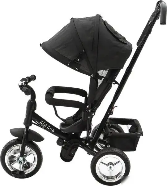 Детский велосипед Zigzag Classic 10/8 5588/33549 предназначен для малышей с ростом от 75 до 100 см и возрастом от 1 до 3 лет. Он рассчитан как велосипед-коляска, который легко превращается в удобное транспортное средство с регулируемой сиденьем и ремнями безопасности, обеспечивающими безопасность ребёнка. Благодаря ручке с управлением, родители легко контролируют движение, а мягкий козырёк защищает от солнца. Велосипед имеет прочную стальную раму чёрного цвета и 8-дюймовые цельные колёса, которые устойчиво движутся по разным поверхностям. Механизм с одной скоростью и жесткая вилка делают управление простым и надёжным. В комплект входят задний багажник, корзина, звонок и подножка — всё, что нужно для комфортных прогулок. Вы можете использовать стопор задних колёс для безопасности и зафиксировать велосипед на месте. Этот велосипед соединяет легкость использования и безопасность, чтобы малыши могли наслаждаться первыми прогулками на свежем воздухе. Инструкция по сборке и подготовке к использованию уже есть в коробке.