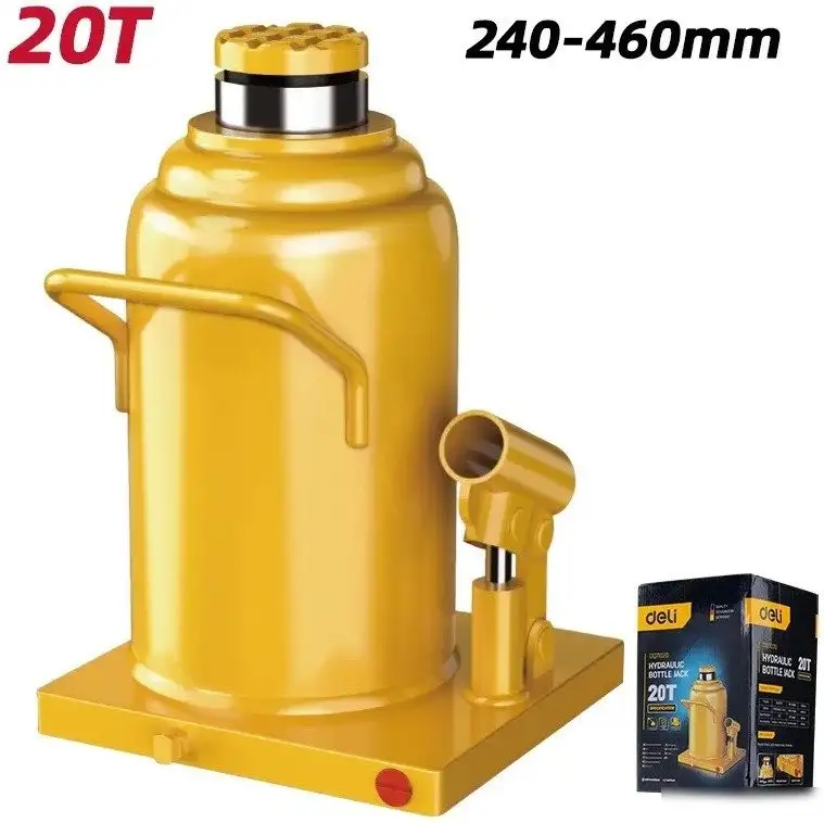 Бутылочный домкрат Deli DQ71020 обладает гидравлическим механизмом и грузоподъемностью 20 тонн, что позволяет поднимать тяжелые объекты. Его максимальная высота подъема составляет 460 мм, а минимальная – 240 мм, благодаря чему он подходит для различных задач. Домкрат выполнен в желтом цвете, что делает его легко заметным в гараже или на стройке. Ход штока составляет 160 мм, что обеспечивает плавное и стабильное поднятие. Вес устройства составляет 8.7 кг, его удобно переносить и использовать.