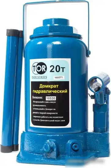 Бутылочный домкрат TOR имеет гидравлический механизм, который позволяет легко поднимать грузы весом до 20 тонн. Его максимальная высота подъема составляет 244 мм, что удобно для различных ремонтных работ. Домкрат выполнен в синем цвете и обладает высоким качеством. Ход штока составляет 145 мм, что дает возможность точно регулировать поднятие. Вес устройства всего 11,7 кг, поэтому его легко переносить и использовать в разных местах. Этот домкрат – надежный инструмент для автосервисов и гаражей. Он обеспечивает стабильность и безопасность при поднятии тяжелых предметов.