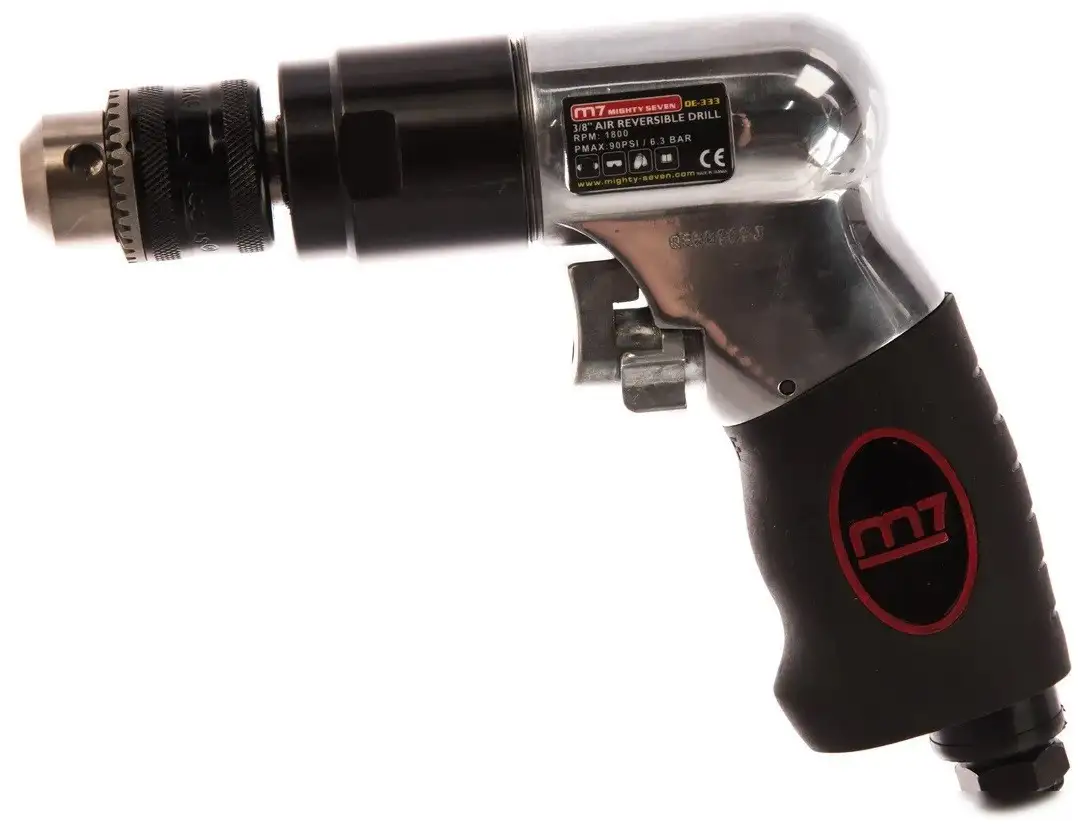 Безударная пневматическая дрель M7 QE-333 предназначена для выполнения сверлильных работ. Она работает в режиме одноступенчатого вращения с максимальной скоростью до 1800 об/мин, что обеспечивает быстрый и качественный результат. Устройство оснащено стандартным патроном диаметром до 10 мм, что удобно для большинства сверл и бит. В дрели есть реверс — это помогает откручивать застрявшие сверла или работать с разными материалами. Вес устройства составляет примерно 1100 г, его удобно держать и использовать продолжительное время. Безопасность и комфорт работы обеспечиваются дополнительной рукояткой.