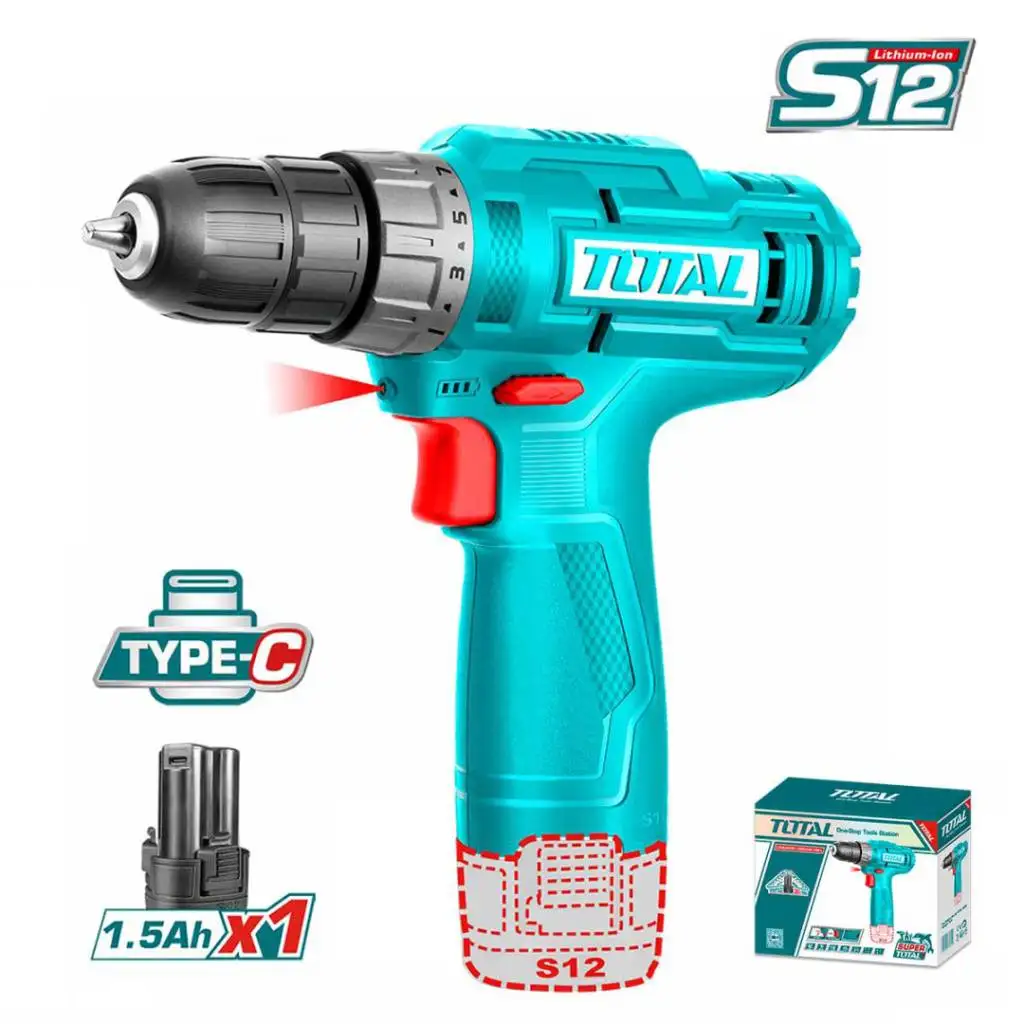 Дрель-шуруповерт Total TDLI12428 (с 2-мя АКБ, без ЗУ)