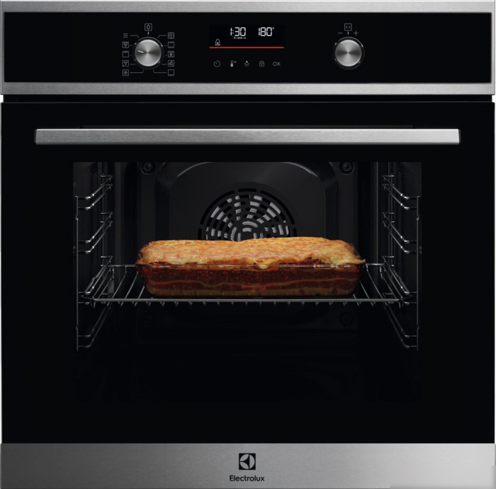 Электрический духовой шкаф Electrolux COF6P76BX произведён в Польше и обладает классом энергоэффективности A+. Он оснащён 65-литровым объёмом и электронным управлением с ярким светодиодным экраном, что удобно для настройки. В шкафу есть 9 режимов работы, включая нижний и верхний нагрев, гриль и размораживание, а также автоматические программы приготовления. Дверца из трёх стекол обеспечивает хорошую теплоизоляцию и безопасность, а телескопические направляющие помогают легко доставать блюда. Благодаря пиролитической очистке уход за шкафом становится проще. Максимальная температура приготовления достигает 300 °C, что подходит для разных блюд. Шкаф оборудован таймером, блокировкой от детей и освещением внутри для удобства.