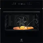 Электрический духовой шкаф Electrolux EOB7S31Z — это современное устройство с термостатом и сенсорным управлением. Он рассчитан на 70 литров и работает с различными режимами, включая гриль, вентиляцию и конвекцию, что позволяет готовить разнообразные блюда. В шкафе есть функция приготовления на пару (SteamBoost), что помогает сохранять вкус и полезные свойства продуктов. Управление осуществляется через ЖК-экран, есть таймер, блокировка от детей и автоматические программы приготовления. Объемный дизайн содержит 3 стекла в дверце для безопасности и хорошего обзора внутриизделий. Также устройство оснащено кольцевыми телескопическими направляющими для удобства пользования и очистки. Этот духовка подходит для тех, кто ценит функциональность и простоту в использовании.