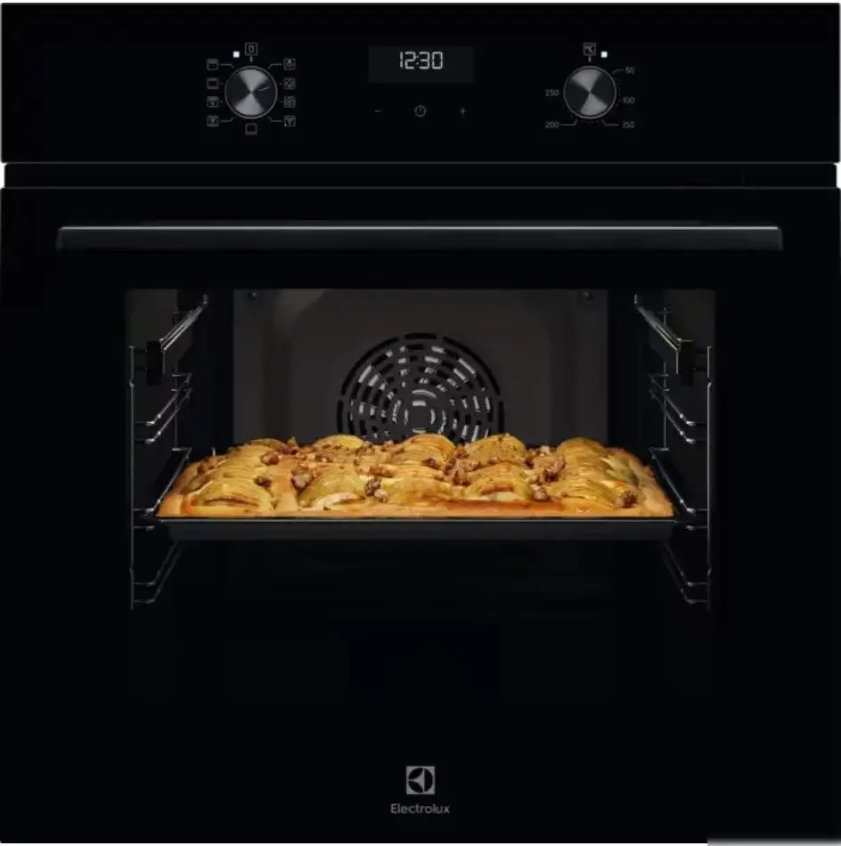 Электрический духовой шкаф Electrolux SteamBake PRO 600 EOD5C70BZ — это устройство с большой вместительностью 65 литров, которое поможет вам готовить разнообразные блюда. Он управляется с помощью электронного светодиодного экрана и оснащён автоматическими функциями, такими как таймер, отложенный старт и плавное закрывание дверцы, что делает использование удобным и безопасным. В конструкции есть 8 режимов работы, включая гриль, конвекцию и нагрев снизу, что позволяет добиться идеальных результатов при приготовлении. Шкаф имеет каталитическую очистку, которая облегчает уход, а также телескопические направляющие для простого и безопасного извлечения противней. Возможность приготовления на пару помогает сохранять вкус и полезные свойства продуктов. Дверца с двумя стеклами обеспечивает теплоизоляцию и безопасность. В комплект входят два противня и решетка, дополняющие функциональность. Для удобства шкаф также оснащён таймером и системой освещения, что обеспечивает комфорт при готовке. Этот духовой шкаф идеально впишется в вашу кухню благодаря своему современному дизайну и практичным функциям.