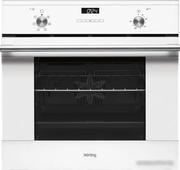 Электрический духовой шкаф Korting OKB 760 FW выполнен в белом цвете и обладает хорошей вместимостью — 67 литров. Он управляется электронным механизмом и оснащён светодиодным экраном, что делает управление простым и удобным. Шкаф предлагает шесть режимов работы, включая нижний и верхний нагрев, их комбинацию и гриль, что позволяет готовить разнообразные блюда. Максимальная температура достигает 250°C, а конструкция включает устойчивую к нагреву дверцу с тремя стеклами для безопасности. Внутри есть внутренние подсветка и направляющие, облегчающие размещение противней и решётки. В комплект входят противни и решётка для приготовления различных блюд. Электронный таймер и звуковой сигнал помогают точно контролировать процесс приготовления. Также в特点 — ручки с функцией утапливания, что делает дизайн современным и безопасным при использовании.