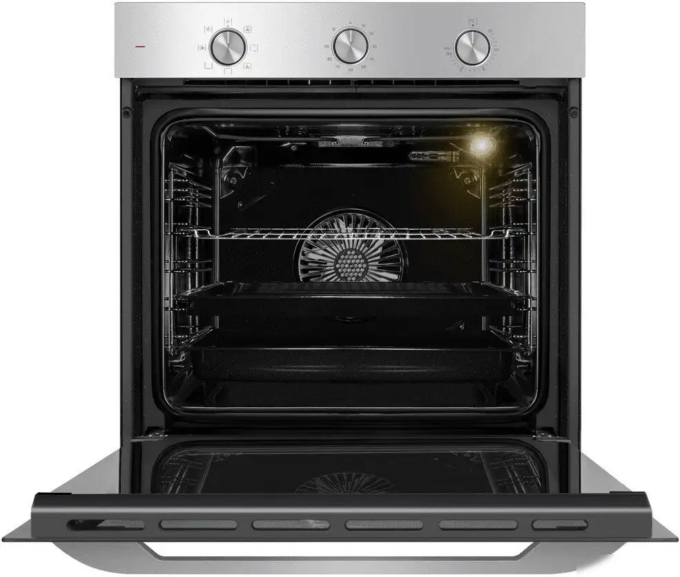 Электрический духовой шкаф MAUNFELD FEOF7871S изготовлен из нержавеющей стали и занимает стандартное место на кухне. Он имеет объем 78 литров, что позволяет готовить большие порции и разнообразные блюда. Шкаф работает на классе энергоэффективности А и подключается мощностью 2 400 Вт. Управление осуществляется механическими переключателями, а для удобства есть таймер, термостат, свет внутри камеры и звуковой сигнал. Диапазон температуры достигает 250°C, а благодаря шести режимам работы можно выбрать подходящий способ приготовления, включая гриль и конвекцию. Для удобства устройство оснащено четырьмя стеклами дверцы с откидным механизмом и двумя противнями — стандартным и глубоким. Духовой шкаф легко очищается паром, а его габариты подходят для стандартной ниши для встраивания. Среди дополнительных функций — равномерное нагревание и возможность приготовления различных блюд.